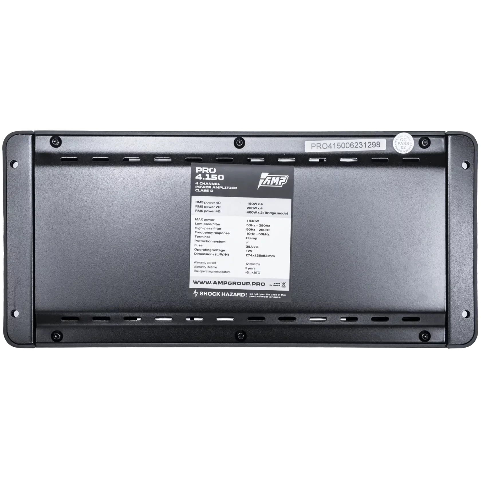 AMP PRO 4.150 — автомобильный усилитель для питания акустики или сабвуферного звена (в зависимости от схемы подключения). При установке важны корректное питание, надежные соединения и защита силовой линии предохранителем у аккумулятора.