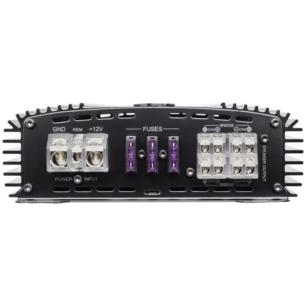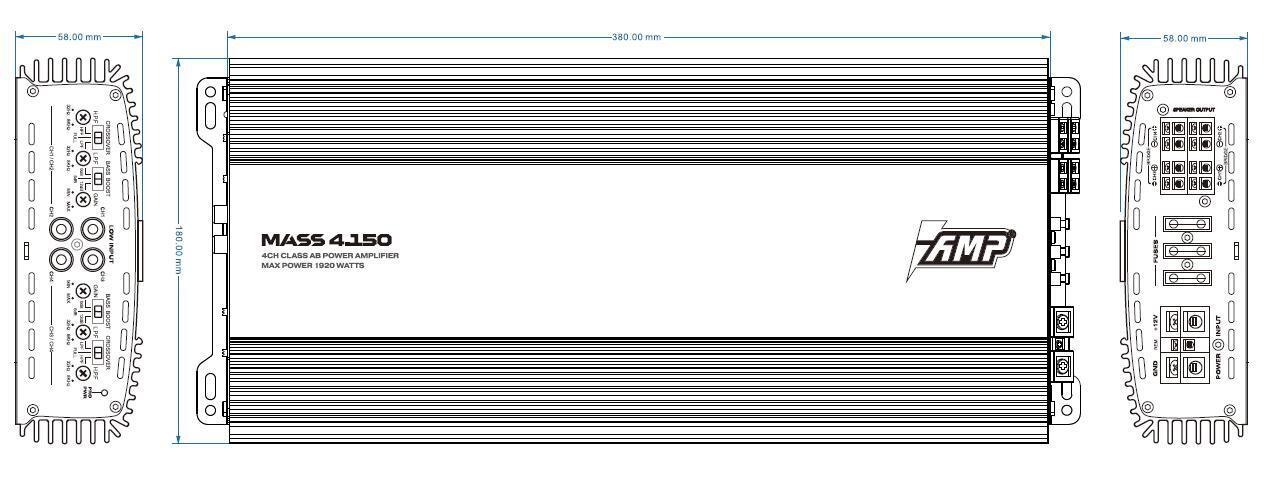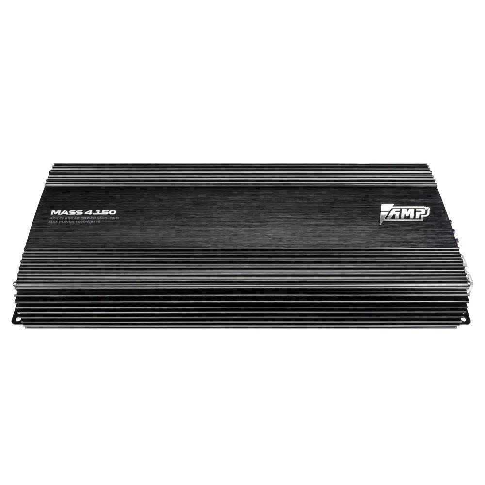AMP MASS 4.150 — 4‑канальный усилитель, рассчитанный на подключение фронтальной и/или тыловой акустики. Дает более высокий контроль динамиков, заметно повышает динамику и запас по громкости по сравнению со встроенным усилителем ГУ.